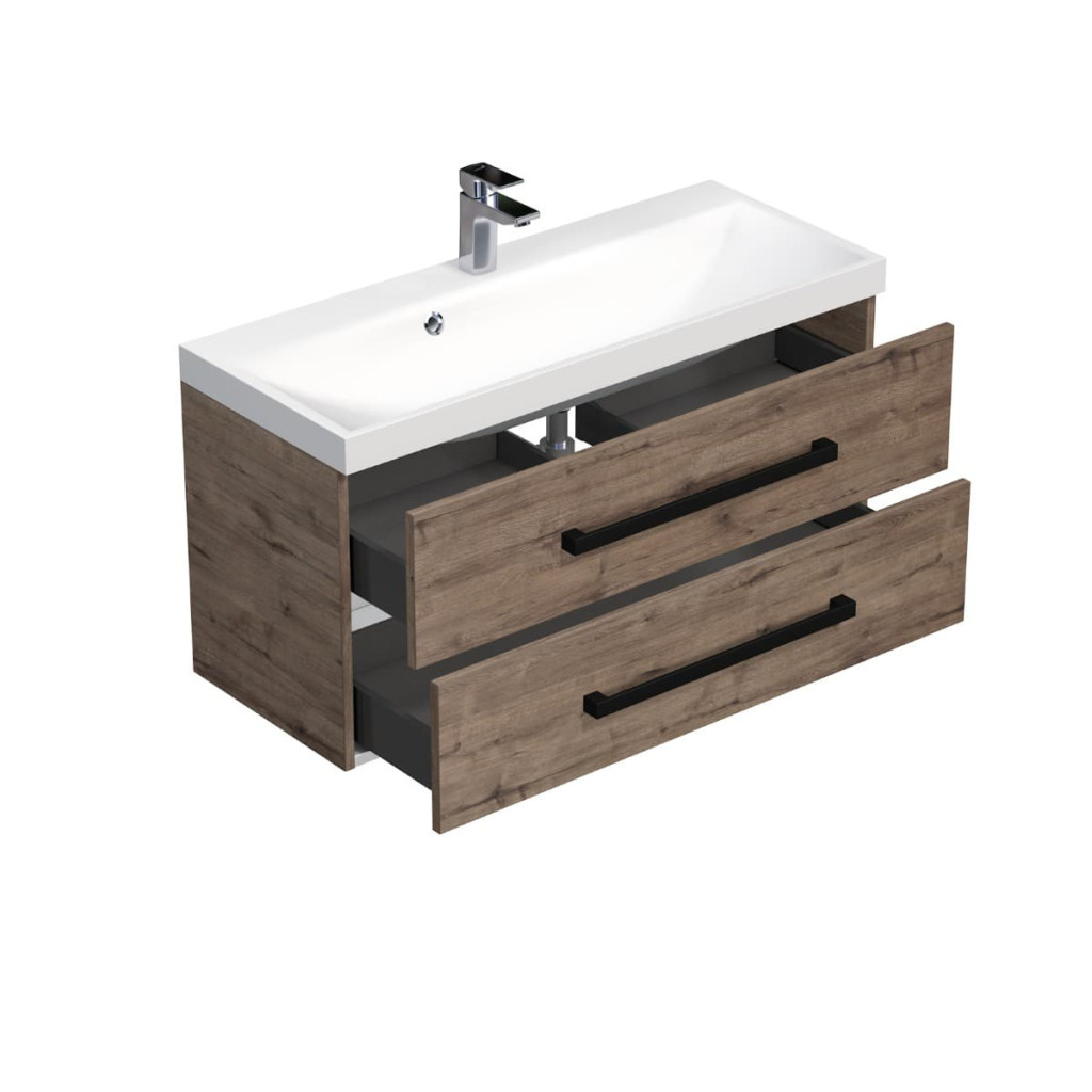 Dotaz na produkt Na splátky ještě dnesKoupelnová skříňka s umyvadlem Naturel Cube Way nabízí prostorné úložné prostory pro vaši koupelnu a zároveň působí moderním a stylovým dojmem. Umyvadlo je umístěno na desce v dekoru dubu Wellington, které v kombinaci s čistými liniemi skříňky vytváří dokonalý designový celek. Skříňka disponuje praktickými plnovýsuvnými zásuvkami s dotahem pro snadný přístup k vašim kosmetickým potřebám.