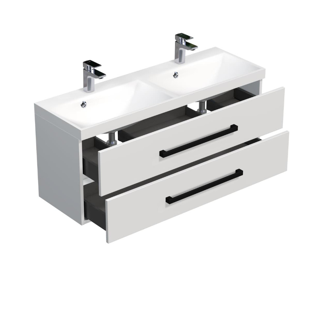 Dotaz na produkt Na splátky ještě dnesKoupelnová skříňka s dvojumyvadlem Naturel Cube Way nabízí velkorysé úložné prostory pro vaši koupelnu a zároveň působí moderním a stylovým dojmem. Praktické dvojumyvadlo z litého mramoru v kombinaci s čistými liniemi skříňky vytváří dokonalý designový celek. Skříňka disponuje plnovýsuvnými zásuvkami s dotahem pro snadný přístup k vašim kosmetickým potřebám.