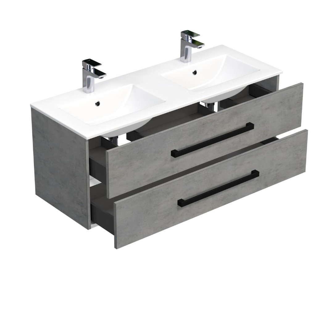 Koupelnová skříňka s černou úchytkou a umyvadlem SAT Cube Way 120x53x46 cm beton mat CUBE46C1202BEMOD