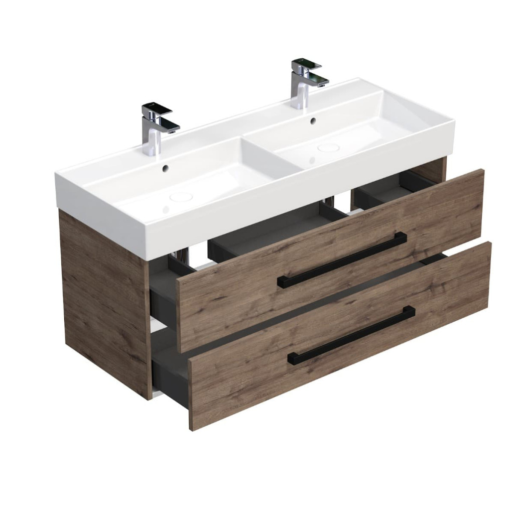 Dotaz na produkt Na splátky ještě dnesKoupelnová skříňka s umyvadlem SAT Cube Way nabízí potřebné úložné prostory pro vaši koupelnu a zároveň působí moderním a stylovým dojmem. Moderní keramické umyvadlo v kombinaci s čistými liniemi skříňky v dekoru dub Wellington vytváří dokonalý designový celek. Skříňka disponuje praktickými plnovýsuvnými zásuvkami s dotahem pro snadný přístup k vašim kosmetickým potřebám.