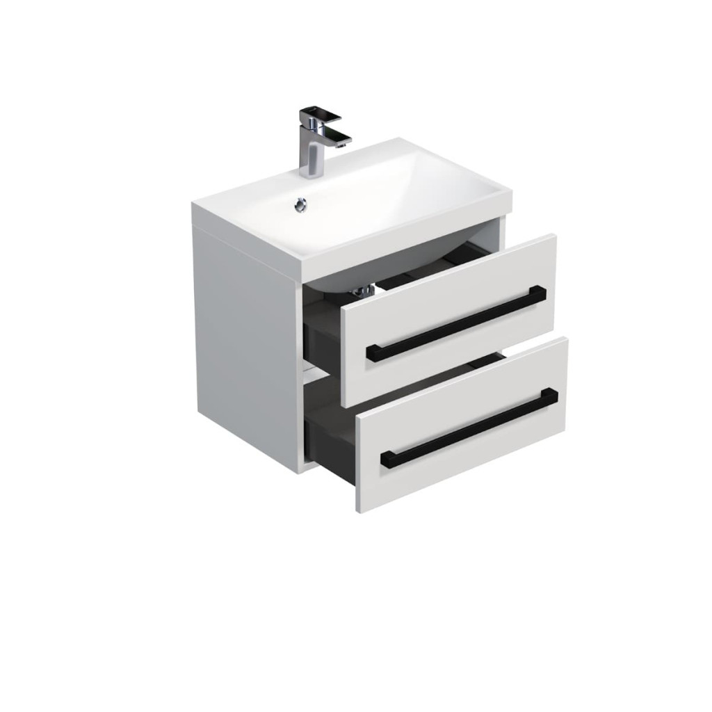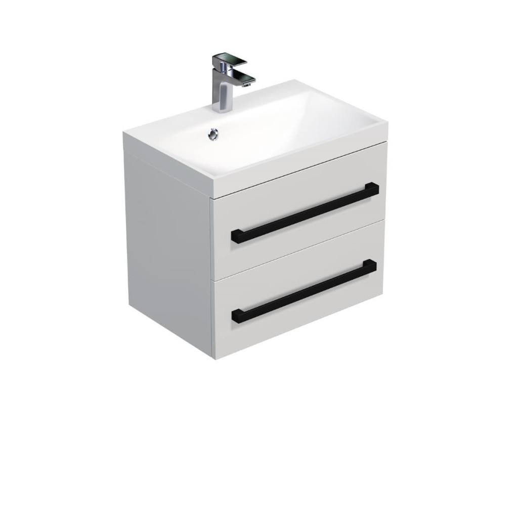 Koupelnová skříňka s černou úchytkou a umyvadlem SAT Cube Way 60x53x40 cm bílá lesk lesk/mat CUBE2C60ZBL