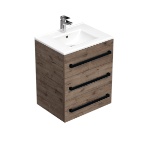 Koupelnová skříňka s černou úchytkou a umyvadlem SAT Cube Way 60x76,5x46 cm dub Wellington mat CUBE46C603DWMOD
