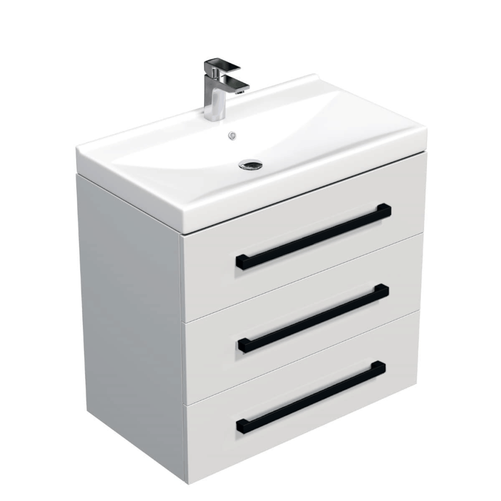 Koupelnová skříňka s černou úchytkou a umyvadlem SAT Cube Way 80x71x46 cm bílá lesk CUBE46C803BIVER