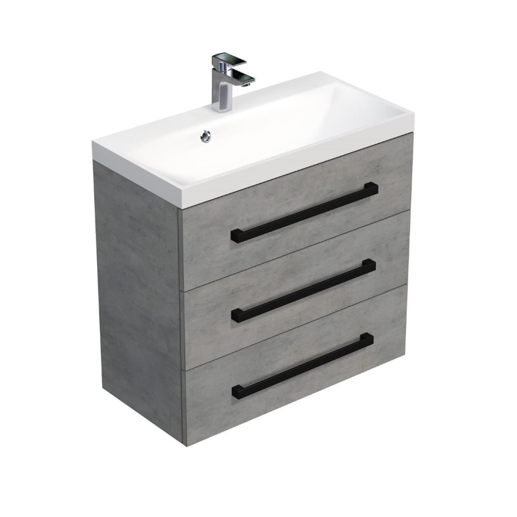 Koupelnová skříňka s černou úchytkou a umyvadlem SAT Cube Way 80x76,5x40 cm beton mat CUBE2C803BE