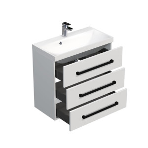 Koupelnová skříňka s černou úchytkou a umyvadlem SAT Cube Way 80x76,5x40 cm bílá lesk lesk/mat CUBE2C803BL