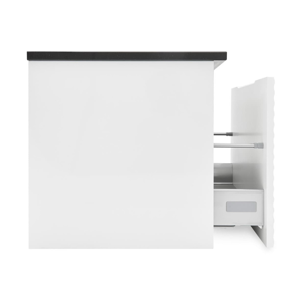 Skříňka je navržena s ohledem na praktičnost a estetiku v koupelně. Otevírání zásuvky je možné na horní nebo spodní části čela zásuvky a díky tomu poskytujíce pohodlný přístup k úložnému prostoru.