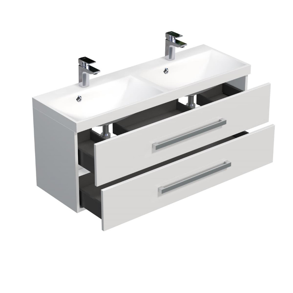 Dotaz na produkt Na splátky ještě dnesKoupelnová skříňka s dvojumyvadlem Naturel Cube Way nabízí velkorysé úložné prostory pro vaši koupelnu a zároveň působí moderním a stylovým dojmem. Praktické dvojumyvadlo z litého mramoru v kombinaci s čistými liniemi skříňky vytváří dokonalý designový celek. Skříňka disponuje plnovýsuvnými zásuvkami s dotahem pro snadný přístup k vašim kosmetickým potřebám.
