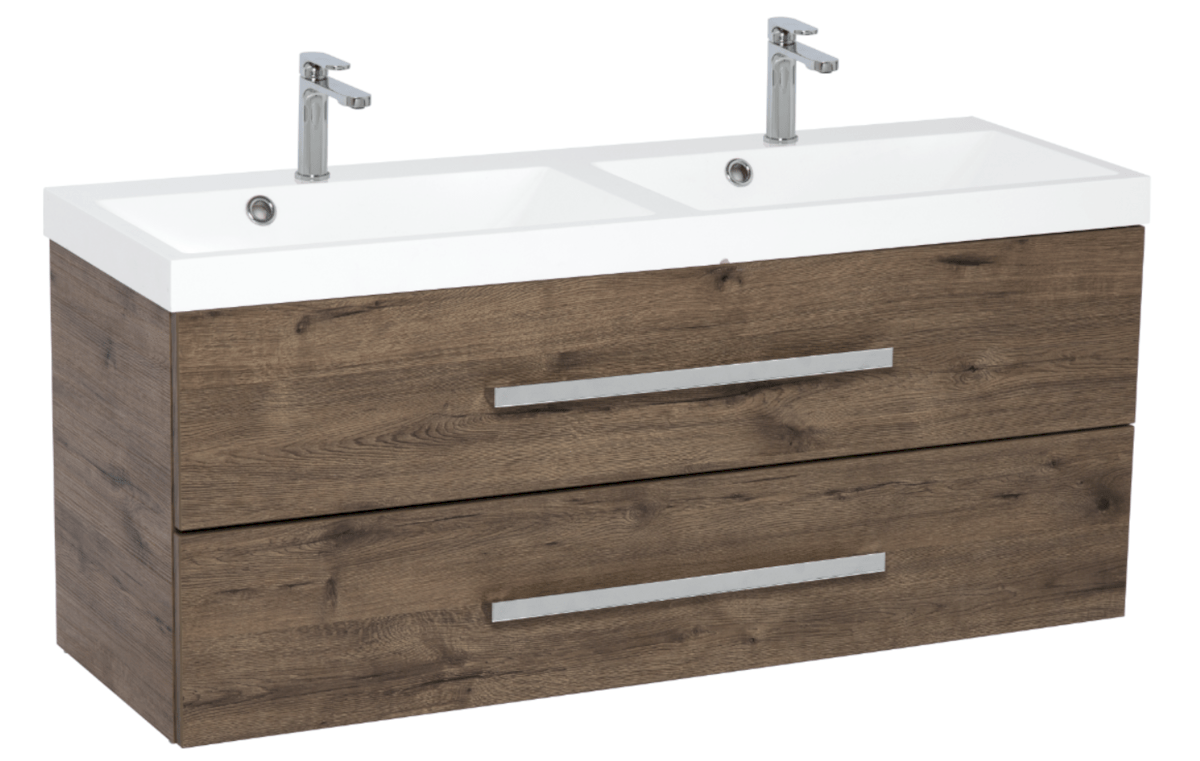 Dotaz na produkt Na splátky ještě dnesKoupelnová skříňka s dvojumyvadlem Naturel Cube Way nabízí prostorné úložné prostory pro vaši koupelnu a zároveň působí moderním a stylovým dojmem. Dvojumyvadlo je umístěno na desce v dekoru dubu Wellington, které v kombinaci s čistými liniemi skříňky vytváří dokonalý designový celek. Skříňka disponuje praktickými plnovýsuvnými zásuvkami s dotahem pro snadný přístup k vašim kosmetickým potřebám.