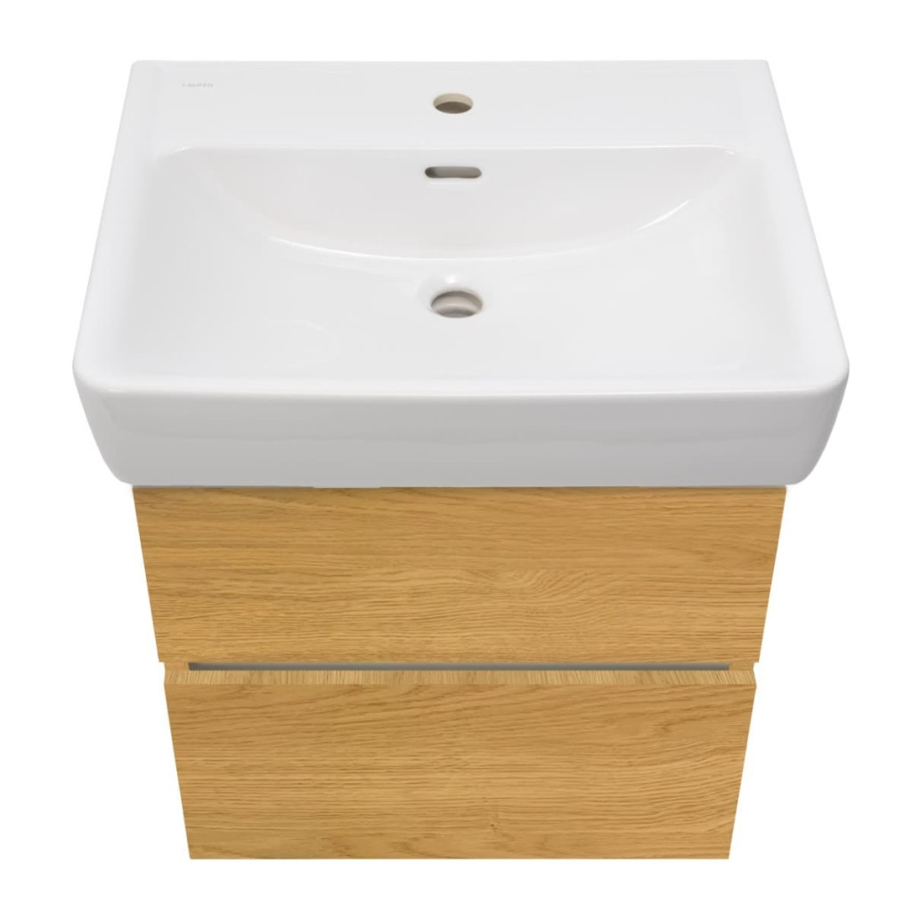 Dotaz na produkt Na splátky ještě dnesZávěsná koupelnová skříňka z řady Naturel Project je praktickým řešením pro moderní koupelny, které vyžadují funkčnost i estetiku. Skříňka je vybavena kvalitním keramickým umyvadlem značky Laufen, které je známé svou odolností a snadnou údržbou. Povrch v dekoru dubu dodává nábytku přírodní vzhled, který se hodí do světlých i tmavších interiérů. Kompaktní rozměry zajišťují dostatek úložného prostoru bez zbytečného zabírání místa.