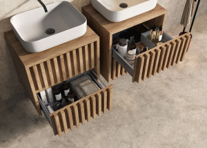 Dotaz na produkt Na splátky ještě dnesPředstavujeme vám naši novinku, koupelnovou skříňku s krycí deskou SAT Delano dub mat. Tato skříňka je nejen praktickým a funkčním prvkem vaší koupelny, ale také přináší do vašeho interiéru hit současného interiérového designu - vertikální lamely.
