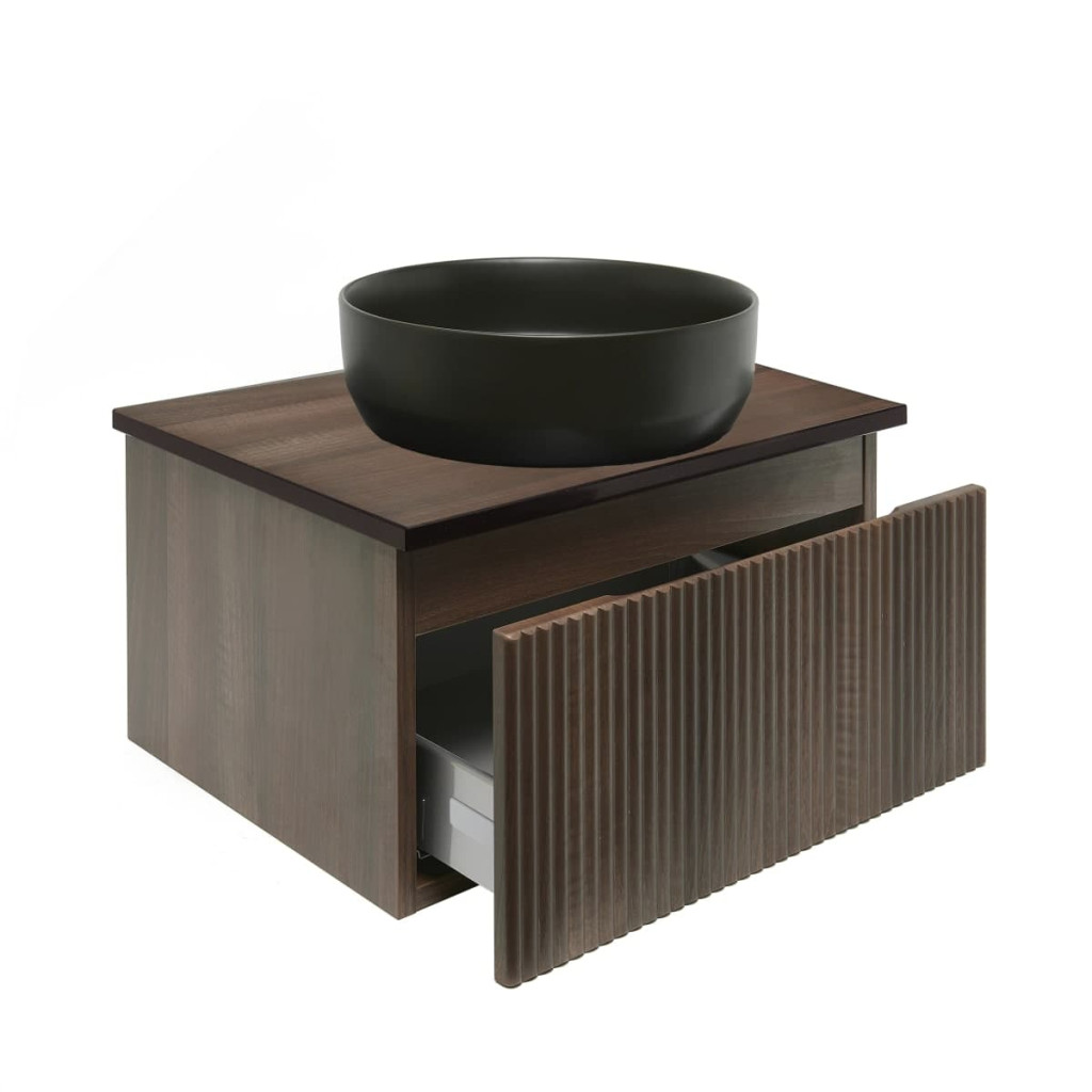 Skříňka je navržena s ohledem na praktičnost a estetiku v koupelně. Otevírání zásuvky je možné na horní nebo spodní části čela zásuvky a díky tomu poskytujíce pohodlný přístup k úložnému prostoru.