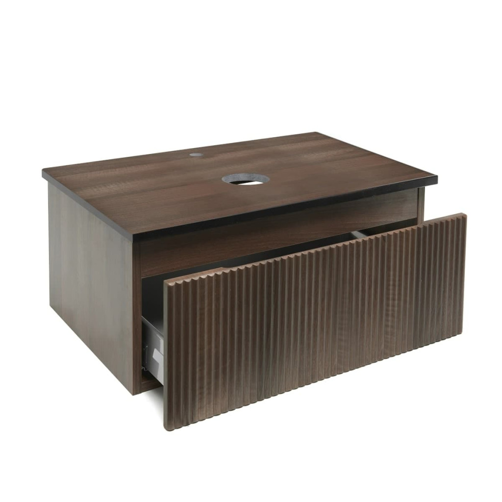 Skříňka je navržena s ohledem na praktičnost a estetiku v koupelně. Otevírání zásuvky je možné na horní nebo spodní části čela zásuvky a díky tomu poskytujíce pohodlný přístup k úložnému prostoru.