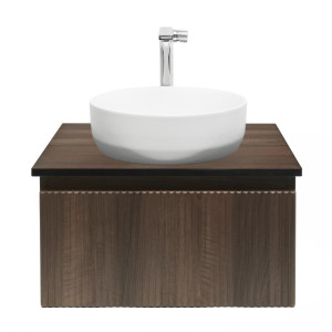 Koupelnová sestava skříňky s krycí deskou, umyvadlem a luxusní baterií skvěle vystihují jedinečnost série SAT Evolution, která se pyšní nadčasovým svislým frézováním přinášející do koupelny jedinečný prvek elegance