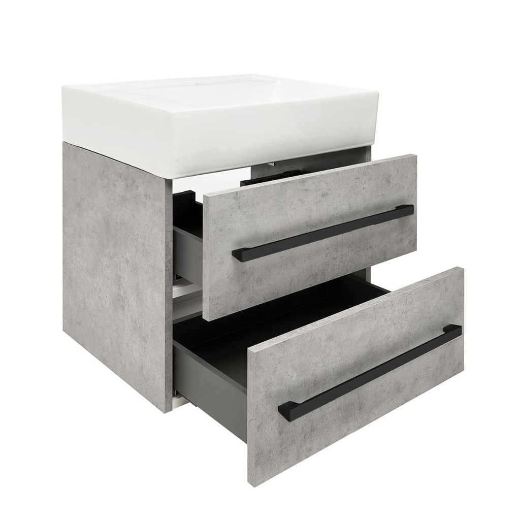 Dotaz na produkt Na splátky ještě dnesKoupelnová skříňka s umyvadlem SAT Cube Way nabízí potřebné úložné prostory pro vaši koupelnu a zároveň působí moderním a stylovým dojmem. Moderní keramické umyvadlo v kombinaci s čistými liniemi skříňky v dekoru beton, vytváří dokonalý designový celek. Skříňka disponuje praktickými plnovýsuvnými zásuvkami s dotahem pro snadný přístup k vašim kosmetickým potřebám.