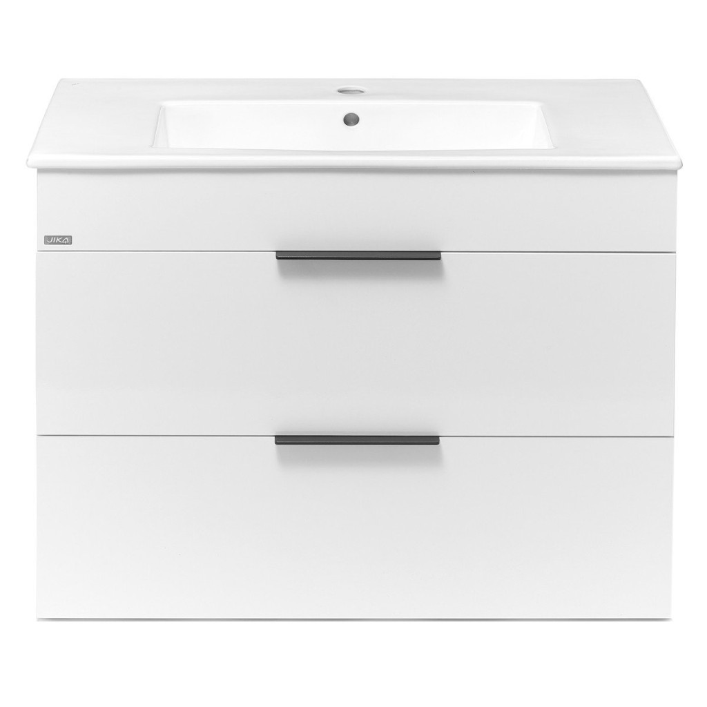 Dotaz na produkt Na splátky ještě dnesNábytková série Jika Plan dodá koupelně luxusní nádech a vše za přijatelnou cenu. Komplet keramického umyvadla a skříňky v jednom balení, Vám nejenom zjednoduší přepravu, ale také vyřeší místo ve Vaší koupelně při ukládání různých koupelnových doplňků. Skříňka má lakované čílko pod umyvadlem a čela zásuvek. Zásuvky jsou opatřeny plnovýsuvem.Vodovodní baterie a sifon není součástí dodávky. Vybrat si můžete z naší široké nabídky.