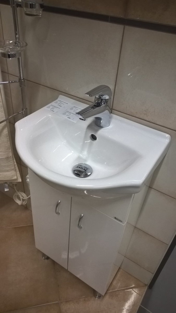 Dotaz na produkt Na splátky ještě dnesMenší skříňka s umývátkem, skříňka je široká 43 cm. Tato skříňka se skvěle hodí do menších koupelen.