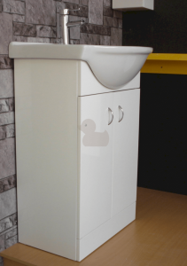 Dotaz na produkt Na splátky ještě dnesSkříňka s keramickým umyvadlem. Bíle lakované boky i čel (lesk), dodáváno v rozloženém stavu včetně 2 chromových úchytek.Součástí dodávky není baterie a sifon