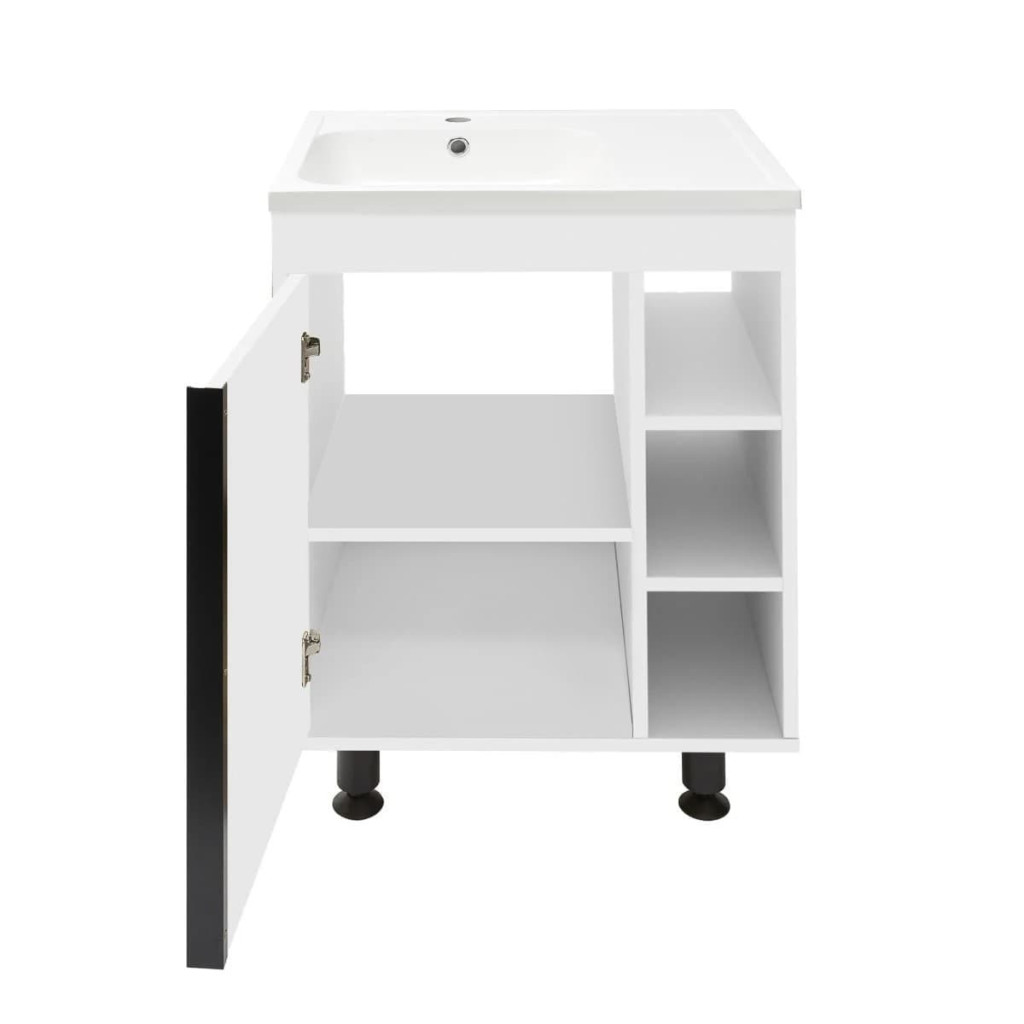 Je vyrobena z kvalitního materiálu, skříňka je odolná a snadno se udržuje. Její lesklý bílý povrch dodává koupelně svěží a čistý vzhled. Umyvadlo z litého mramoru je nejen esteticky přitažlivé, ale také velmi odolné a snadno se čistí.