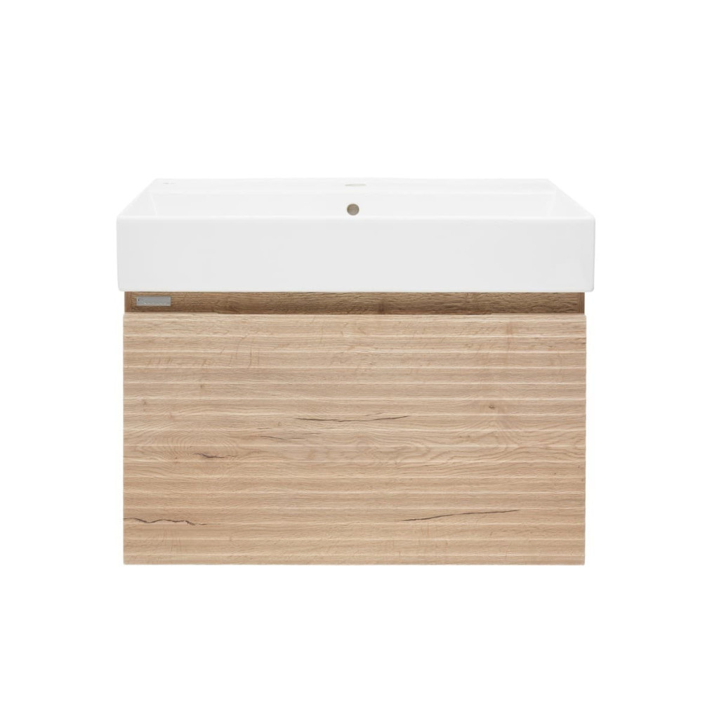 Koupelnová skříňka s keramickým umyvadlem patří do série Naturel Savona. Tato série je vyjímečná frézováním, které dodává celkovému vzhledu skříňky nadčasový charakter a zároveň ji činí moderní a stylovou. Tento prvek se také postará o to, že koupelnová skříňka bude vypadat jedinečně a nezaměnitelně. Součástí skříňky je keramické umyvadlo, které perfektně ladí s celkovým vzhledem. Koupelnová skříňka v dekoru dub halifax nabízí dostatek úložného prostoru pro vaše koupelnové potřeby.