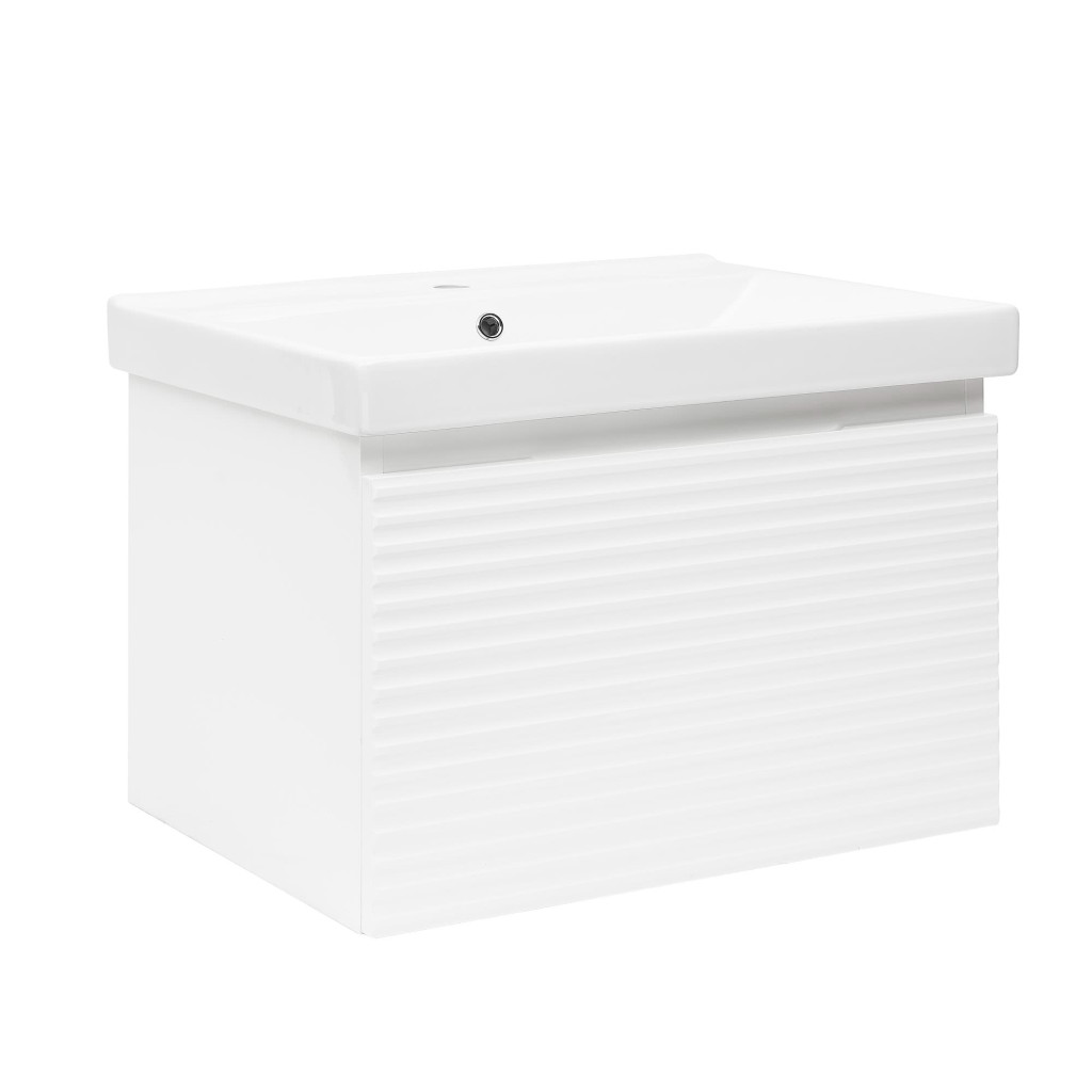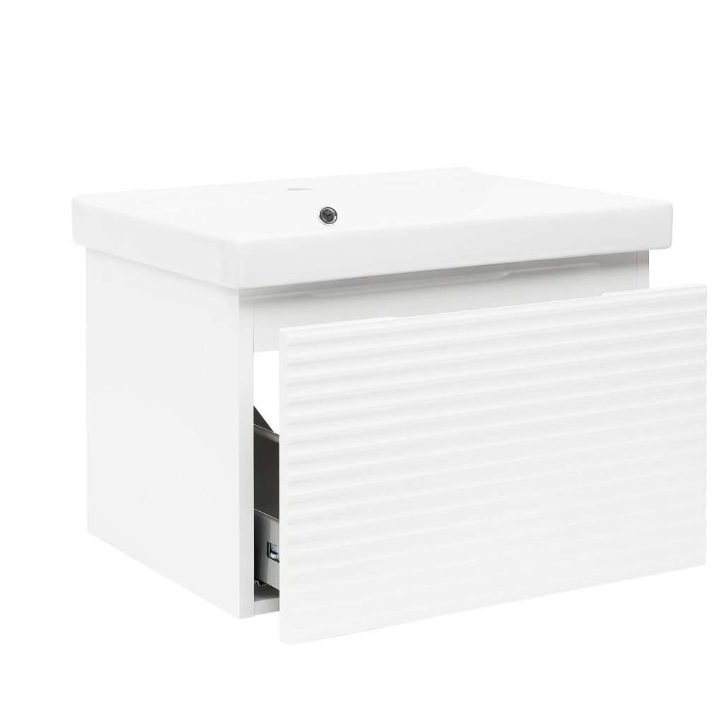 Koupelnová skříňka s keramickým umyvadlem patří do série Naturel Savona. Tato série je vyjímečná frézováním, které dodává celkovému vzhledu skříňky nadčasový charakter a zároveň ji činí moderní a stylovou. Tento prvek se také postará o to, že koupelnová skříňka bude vypadat jedinečně a nezaměnitelně. Součástí skříňky je keramické umyvadlo, které perfektně ladí s celkovým vzhledem. Koupelnová skříňka v lesklé bílé barvě nabízí dostatek úložného prostoru pro vaše koupelnové potřeby.