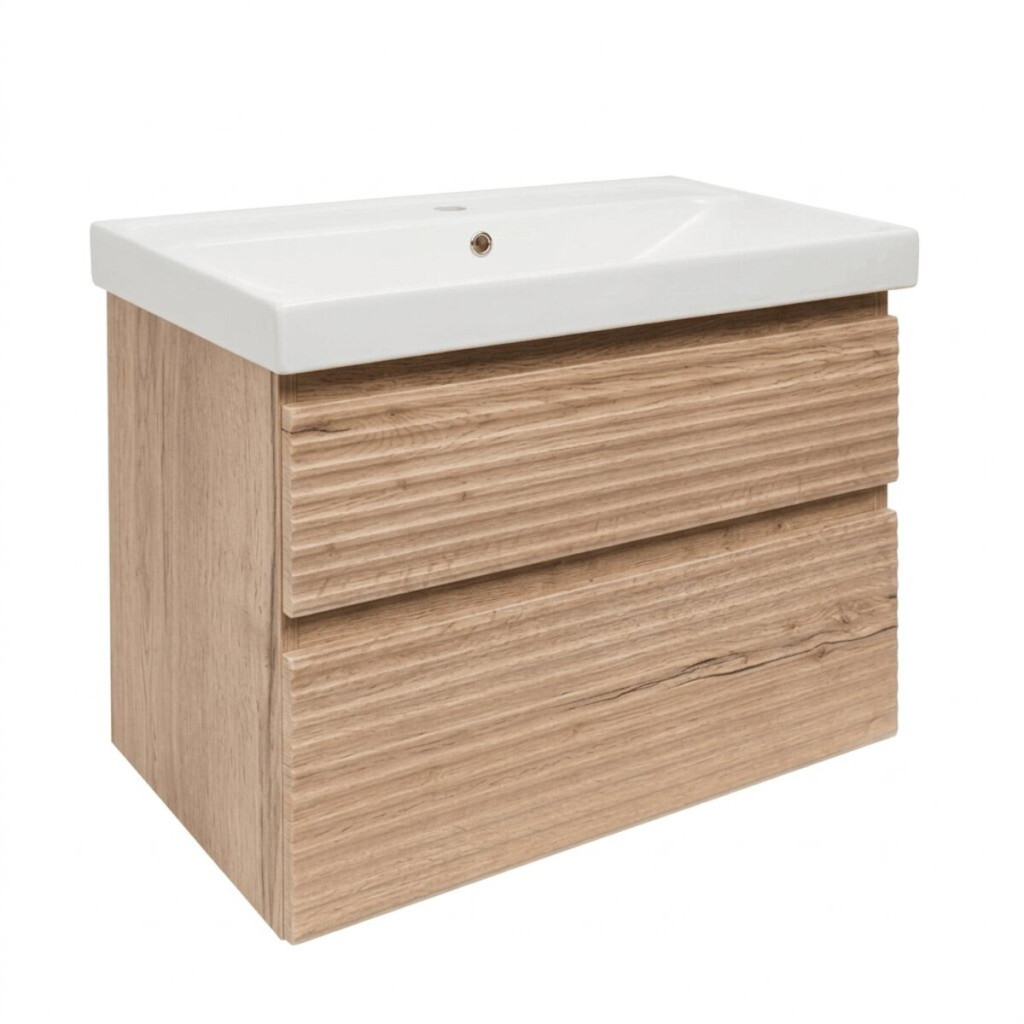 Dotaz na produkt Na splátky ještě dnesKoupelnová skříňka s keramickým umyvadlem patří do série Naturel Savona. Tato série je vyjímečná frézováním, které dodává celkovému vzhledu skříňky nadčasový charakter a zároveň ji činí moderní a stylovou. Tento prvek se také postará o to, že koupelnová skříňka bude vypadat jedinečně a nezaměnitelně. Součástí skříňky je keramické umyvadlo, které perfektně ladí s celkovým vzhledem. Koupelnová skříňka v dekoru dub halifax mat nabízí dostatek úložného prostoru pro vaše koupelnové potřeby.Popis: Závěsná koupelnová skříňka v dekoru dub halifax s matným povrchem o rozměru 78x53x44,8 cm, 2 zásuvky s plnovýsuvem, Keramické umyvadlo SAT Brevis SATBRE6046.Povrch v provedení fólie.