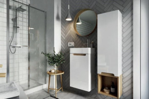 Se skříňkou jsou dodávány směsi ve třech barvách: lesklá bílá, betonová černá a lanýžový buk, což vám dává možnost rozhodnout o konečném vzhledu skříňky během montáže, těsně před zavěšením. Každá z těchto barev jedinečným způsobem podtrhne interiér.