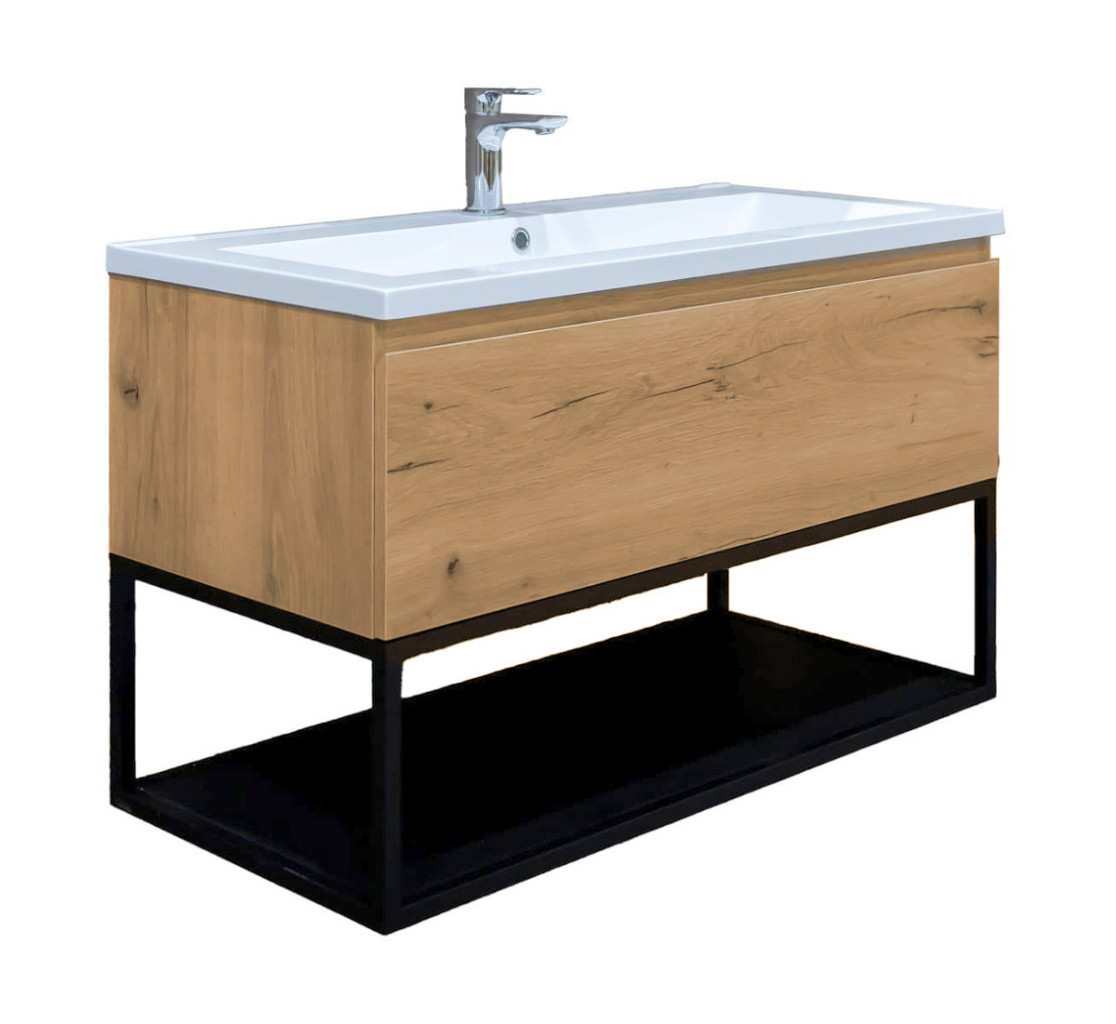 Koupelnový nábytek ze série B-Way představuje inovativní kolekci s elegancí a nadčasovým designem. Tato unikátní kombinace dřevěné skříňky a kovového rámu vytváří dokonalé minimalistické spojení těchto materiálů. Dřevěná skříňka přináší teplý a příjemný kontrast k odolnému kovovému rámu.