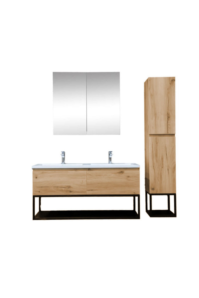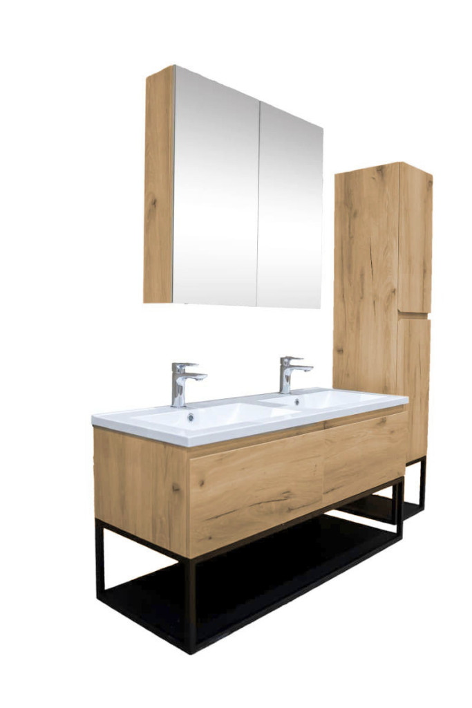 Koupelnový nábytek ze série B-Way představuje inovativní kolekci s elegancí a nadčasovým designem. Tato unikátní kombinace dřevěné skříňky a kovového rámu vytváří dokonalé minimalistické spojení těchto materiálů. Dřevěná skříňka přináší teplý a příjemný kontrast k odolnému kovovému rámu.