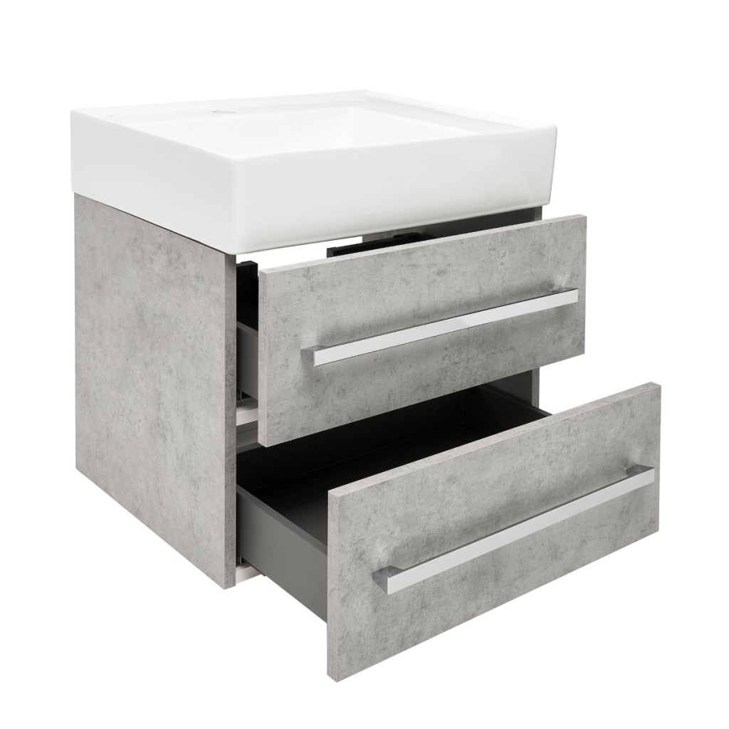 Dotaz na produkt Na splátky ještě dnesKoupelnová skříňka s umyvadlem SAT Cube Way nabízí potřebné úložné prostory pro vaši koupelnu a zároveň působí moderním a stylovým dojmem. Moderní keramické umyvadlo v kombinaci s čistými liniemi skříňky v dekoru beton, vytváří dokonalý designový celek. Skříňka disponuje praktickými plnovýsuvnými zásuvkami s dotahem pro snadný přístup k vašim kosmetickým potřebám.