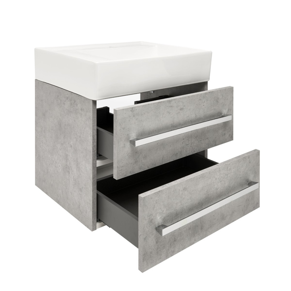 Dotaz na produkt Na splátky ještě dnesKoupelnová skříňka s umyvadlem SAT Cube Way nabízí potřebné úložné prostory pro vaši koupelnu a zároveň působí moderním a stylovým dojmem. Moderní keramické umyvadlo v kombinaci s čistými liniemi skříňky v dekoru beton, vytváří dokonalý designový celek. Skříňka disponuje praktickými plnovýsuvnými zásuvkami s dotahem pro snadný přístup k vašim kosmetickým potřebám.