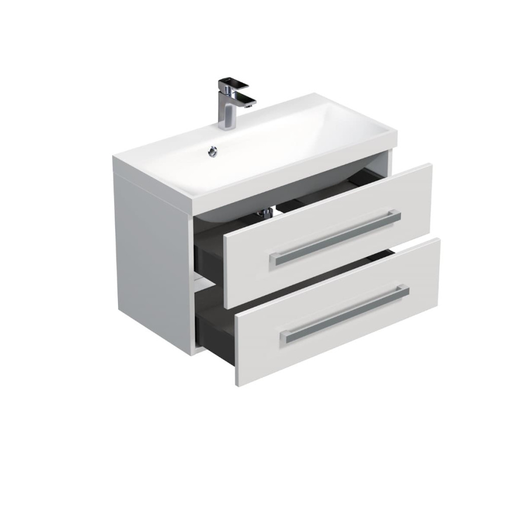 • Závěsná skříňka do koupelny s umyvadlem z litého mramoru 80x40 cm bílý lesk, baleno zvlášť.