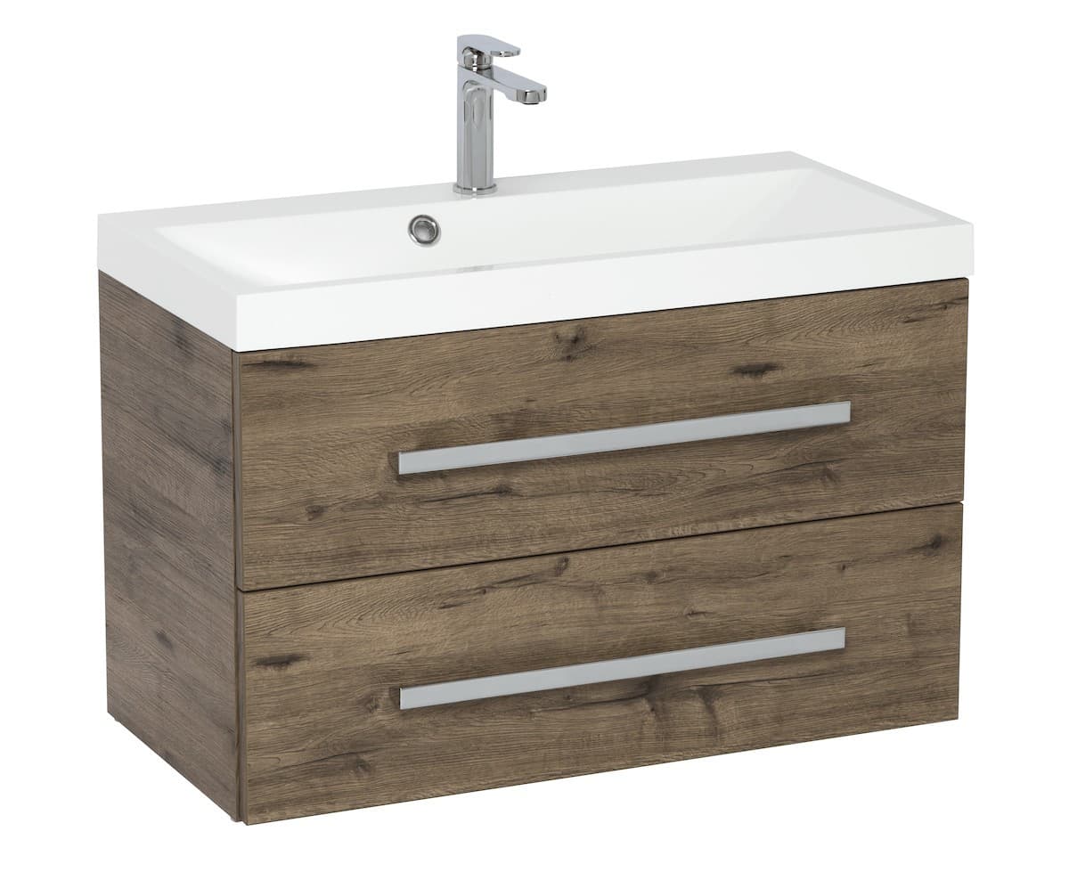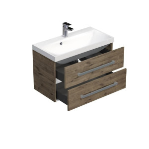 Dotaz na produkt Na splátky ještě dnesKoupelnová skříňka s umyvadlem Naturel Cube Way nabízí prostorné úložné prostory pro vaši koupelnu a zároveň působí moderním a stylovým dojmem. Umyvadlo je umístěno na desce v dekoru dubu Wellington, které v kombinaci s čistými liniemi skříňky vytváří dokonalý designový celek. Skříňka disponuje praktickými plnovýsuvnými zásuvkami s dotahem pro snadný přístup k vašim kosmetickým potřebám.