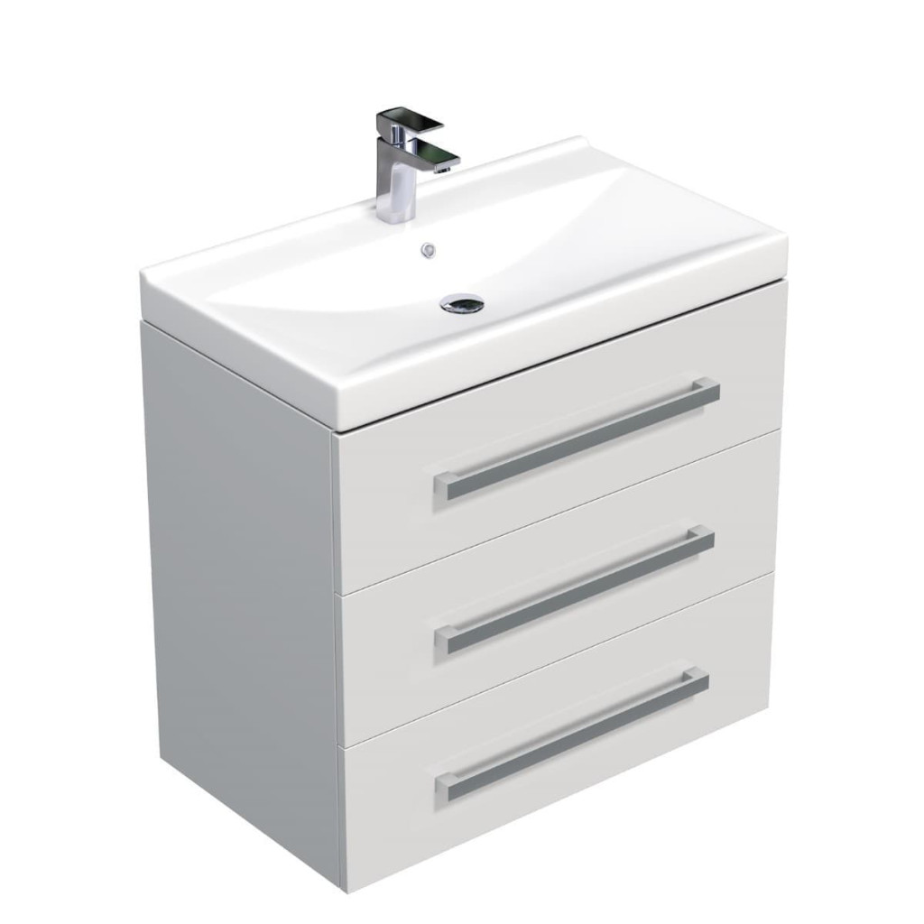• Závěsná skříňka do koupelny 80x76,5x46 cm se 3 zásuvkami, bílém lesku.