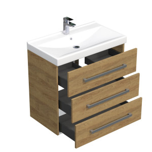 Dotaz na produkt Na splátky ještě dnesKoupelnová skříňka s umyvadlem SAT Cube Way nabízí potřebné úložné prostory pro vaši koupelnu a zároveň působí moderním a stylovým dojmem. Moderní keramické umyvadlo v kombinaci s čistými liniemi skříňky v dekoru dub Hickory, vytváří dokonalý designový celek. Skříňka disponuje praktickými plnovýsuvnými zásuvkami s dotahem pro snadný přístup k vašim kosmetickým potřebám.