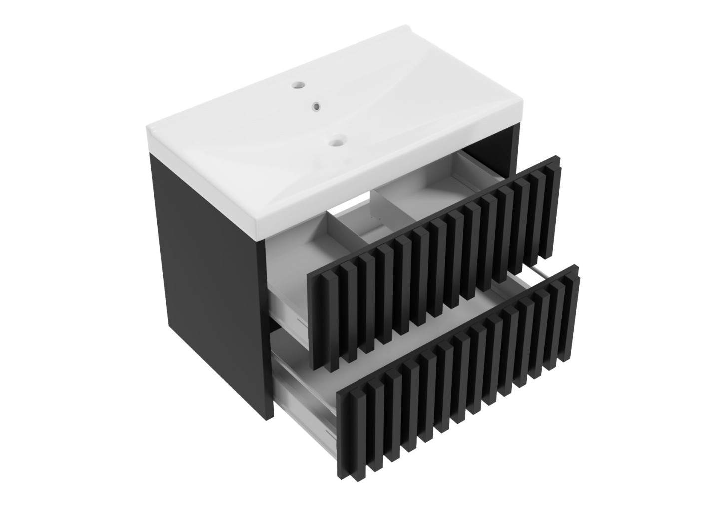 Dotaz na produkt Na splátky ještě dnesPředstavujeme vám naši novinku, koupelnovou skříňku s umyvadlem SAT Delano v černém provedení. Tato skříňka je nejen praktickým a funkčním prvkem vaší koupelny, ale také přináší do vašeho interiéru hit současného interiérového designu - vertikální lamely.