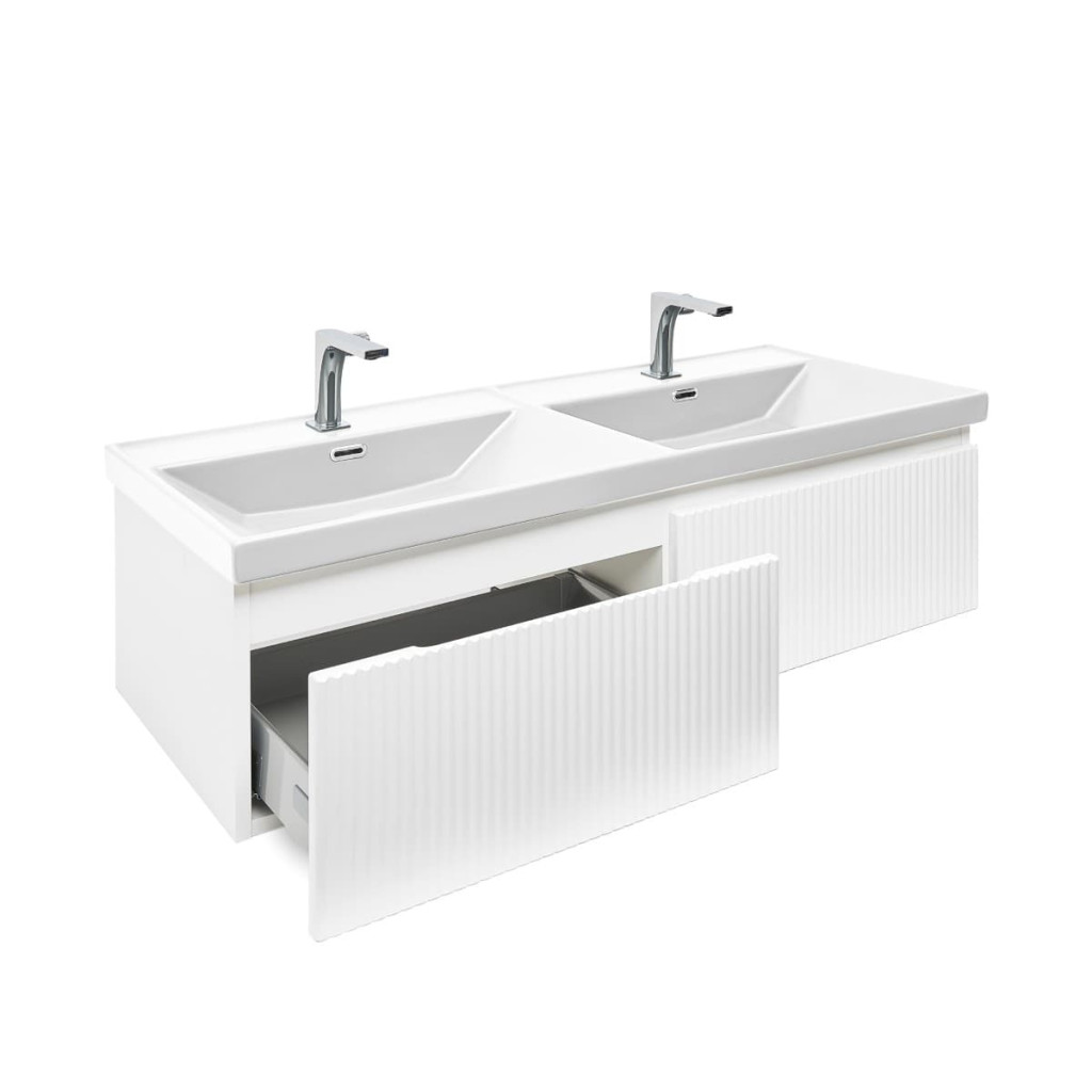 PARAMETRY:Balení: 3 ksDruh výrobku: koupelnová skříňka Barva popisná: bílá Barva základní: bílá Povrch: lamino Typ: s umyvadlem lesk/mat: mat Šířka: 118  cmVýška: 30  cmHloubka: 44,8  cmProvedení:...