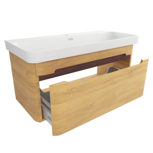 Koupelnová skříňka s umyvadlem SAT Fusion 97,5x43x45 cm dub medový mat SATFUSION100DMMW