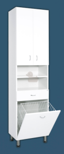 Dotaz na produkt Na splátky ještě dnesOblíbená skříňka do koupelny má bíle lakované boky i dvířka (lesk). Praktický a široký koš na prádlo vám poskytne dostatek prostoru. Koš můžete jednoduše vyndat ze skříňky a odnést k pračce. Součástí dodávky jsou 4 nerezové výškově stavitelné nožičky. Rozměry koše na prádlo jsou 440x420x270mm.