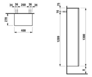 PARAMETRY:Balení: 1 ksHmotnost balení: 27,50  kgDruh výrobku: koupelnová skříňka Barva popisná: bílá Barva základní: bílá Typ: vysoká lesk/mat: mat Šířka: 40  cmVýška: 130  cmHloubka: 27  cmVýsuv:...