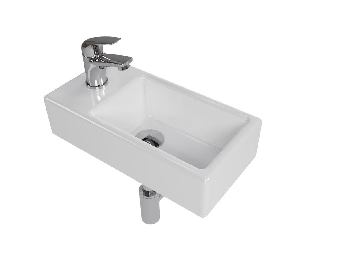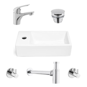 Koupelnový set závěsného levého umývátka Brevis, pákové baterie, sifonu, průtočné zátky a roháčků KSETBRE2L