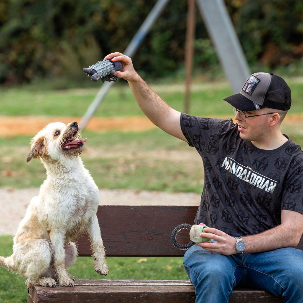 Kousátko s motivem Star Wars The Mandalorian, kterou si zamiluje každý pejsek. Materiál: polyester, pu Odolný materiál Vyčistí zoubky a zabaví pejska Rozměry: 30 x 11 cm Hmotnost: 0,167 kg Oficiální licence, Cerda. ARTESANÍA CERDÁ, S.L. E-46850 LOleria, Valencia, Spain info@cerdagroup.com