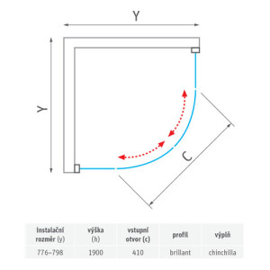 Kout sprchový 1/4kruh 800x800x1900 mm, R550, profil brillant, výplň chinchilla, AFRODITA