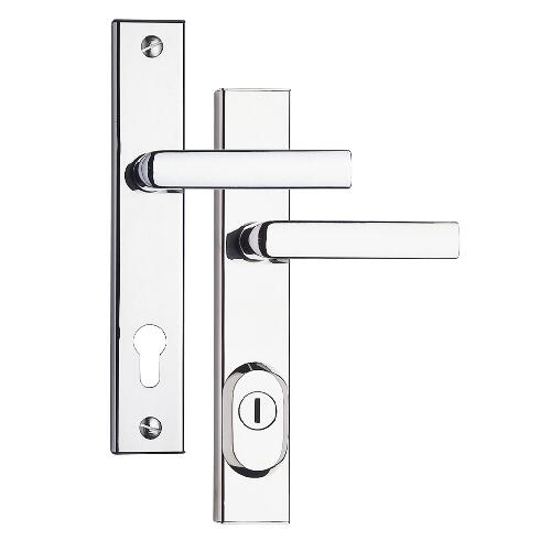 Rozteč mezi klikou a zámkem je 90 mm. Nerezový povrch zaručuje dobrou výdrž.