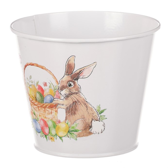 Dotaz na produktKovový obal na květiny s velikonočním designem bude dokonalým doplňkem vaší sváteční výzdoby. S vyobrazeným zajíčkem a barevnými vajíčky v košíku na bílém podkladu, dodá prostoru tu pravou velikonoční atmosféru. Společně s jarními květinami v nich zasazenými, bude vytvářet neodolatelný celek, který přinese svěžest, barevnost a optimismus. Květiny budou v obalu chráněné a vypadat fantasticky.
