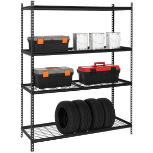 Robustní kovový regál s nosností 1600 kg a mimořádně stabilní konstrukcí. Vybaven čtyřmi odolnými síťovanými policemi s možností výškového nastavení pro flexibilní uložení prakticky jakéhokoliv zboží. Plastové krytky chrání podlahu před poškrábáním. Rychlá a snadná montáž bez nutnosti použití nářadí. Ideální do garáže, skladu, archivu, obchodu či sklepa.
