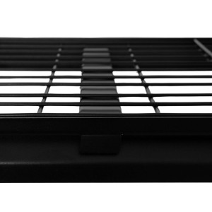 Vybaven je čtyřmi odolnými síťovanými policemi, které jsou výškově nastavitelné, což umožňuje flexibilní přizpůsobení potřebám uživatele. Síťovaná konstrukce polic zajišťuje dostatečnou nosnost, cirkulaci vzduchu a snadné čištění. Plastové krytky na nohách regálu chrání podlahu před poškrábáním a dodávají celé konstrukci stabilitu i při plném zatížení.