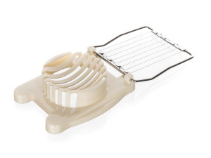 Kráječ je vyroben z pevného plastu, jedním pohybem porcuje vejce pomocí nerezových strun a je vhodný do myčky na nádobí.