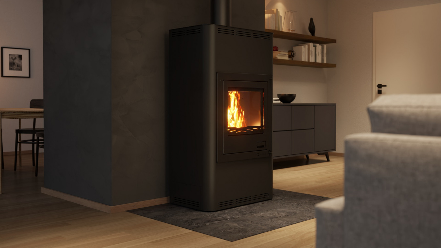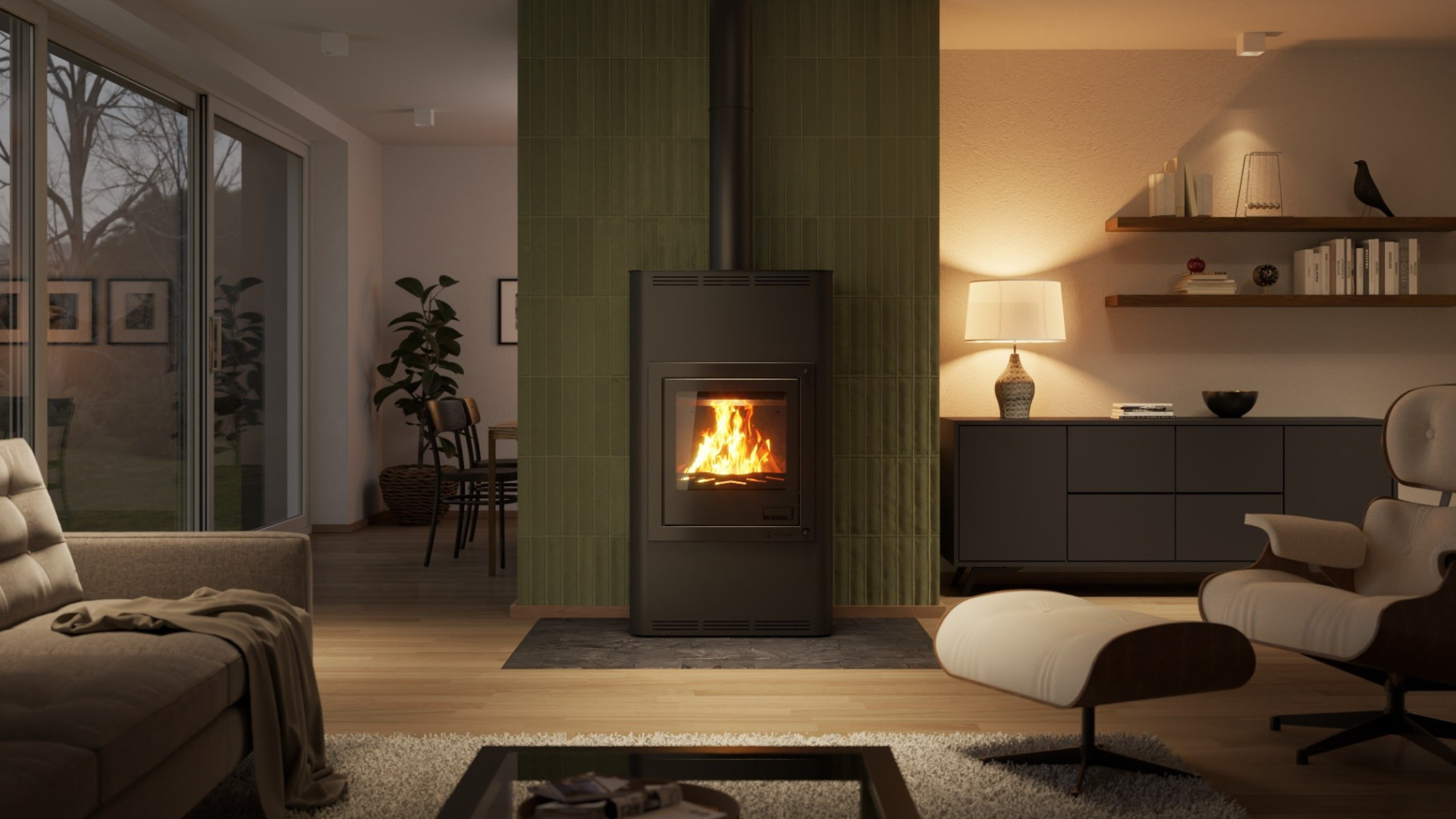Součástí kamen je moderní automatická regulace, která řídí spalovací proces pomocí vzduchové klapky a řídicí jednotky. Tepelná energie je efektivně odváděna do: