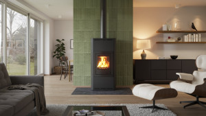 - Bez šamotová technologie - díky absenci šamotové vyzdívky dochází k plošnější předávce tepla do výměníku a zvýšení efektivity ohřevu vody.