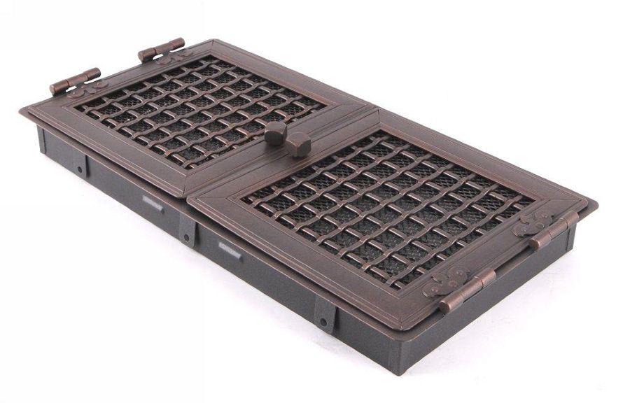 Ventilační mřížky různých rozměrů a v několika barvách. Ocelové s montážním rámečkem, lakované práškovou barvou vysoké kvality, která je odolná vůči vysokým teplotám. I po několikaletém provozu zachovává svůj původní lesk a odstín. Mřížky plní též funkci dekorační. Slouží ke clonění ventilačních otvorů. Jsou vyrobeny z ocelových částí a příslušně upraveny technologickým procesem. Tento typ mřížek je určen pro montáže do komínových sopouchů, stěn a podlah (nepoužívat na stropech).